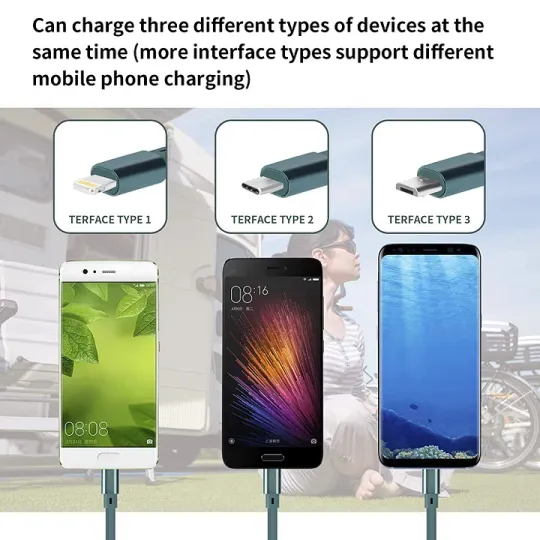 Kompatibilitás: 3 az 1-ben 3 amperes, visszahúzható töltőkábel, kompatibilis iPad, Pad, Pod/Nano 7 csere/Samsung Galaxys22/s21/s20/s10/s9/s8/, Huawei, HTC, LG, Sony, Google Pixel és más Android eszközökkel, a legtöbb mobiltelefon töltéséhez.