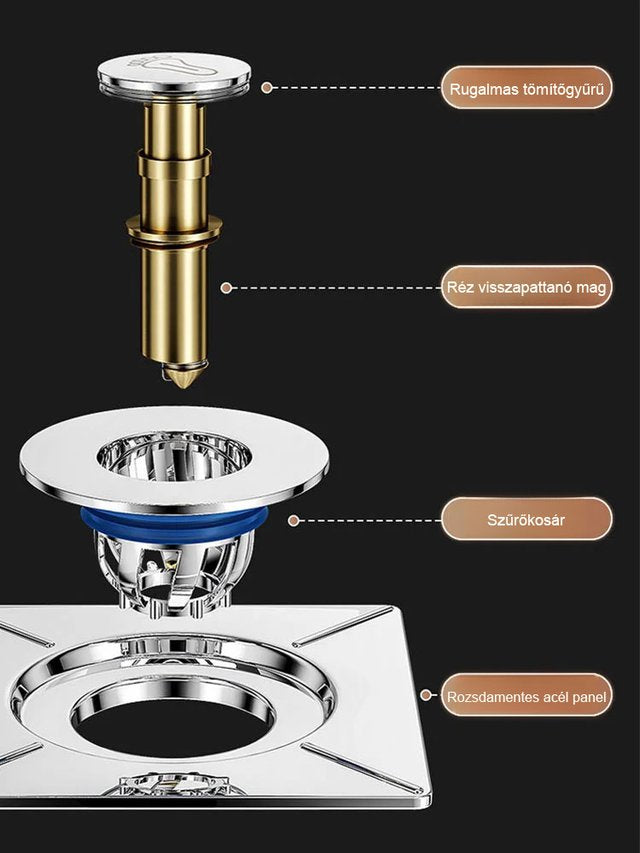 Lábas nyomású padlóösszefolyó a fürdőszobában