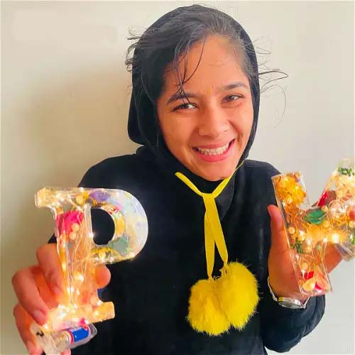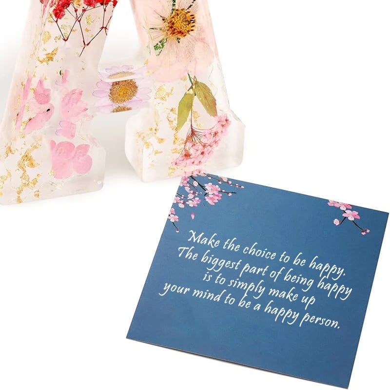 Világítsd meg otthonod virágos éjszakai fényünk magával ragadó fényével, melyet kristálytiszta gyantába burkolt, szárított virágokból gondosan készítettünk. Ez a személyre szabott ábécédizájn egy csipetnyi természetet és eleganciát visz bármely szobába, így tökéletes ajándék vagy egyedi dekorációs darab.