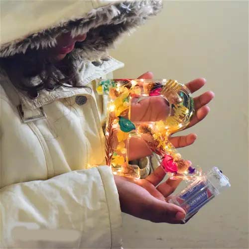 A LED asztali lámpa nagy betűi környezetbarát anyagból készültek. Ugyanakkor a betűk gyönyörű szárított virágokkal vannak tele, a betű fénye ütésálló, környezetbarát, szennyezésmentes, íztelen és biztonságos az emberi szervezet számára. Az éjszakai fény lágy, egyenletes és villódzásmentes fényt bocsát ki, amelyben biztonságosan aludhatsz.