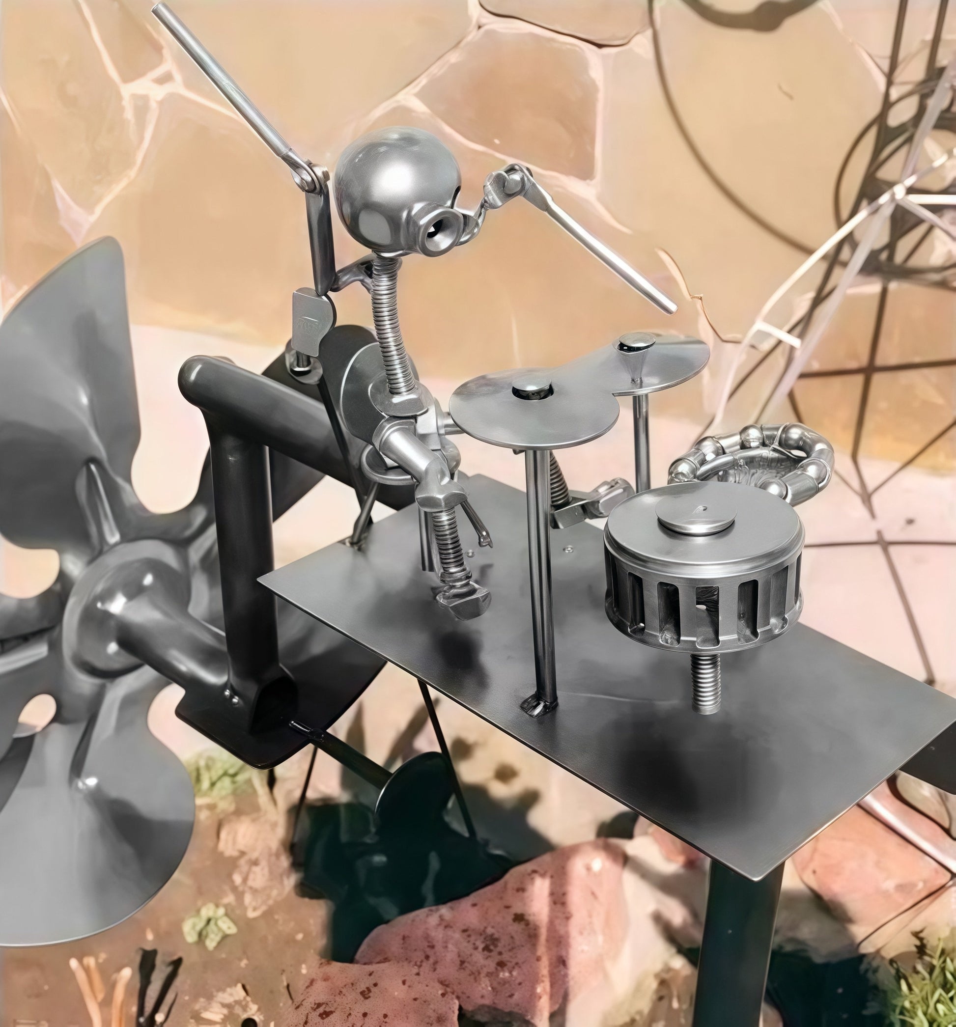 đžÂ   EGYEDI,  kĂ©zzel hegesztett fĂ©m szĂ©lmalomunkban   egy ringatĂł gitĂĄros Ă©s egy dobos jĂĄtszik, akik  gyorsabban jĂĄtszanak, amikor fĂșj a szĂ©l  đž