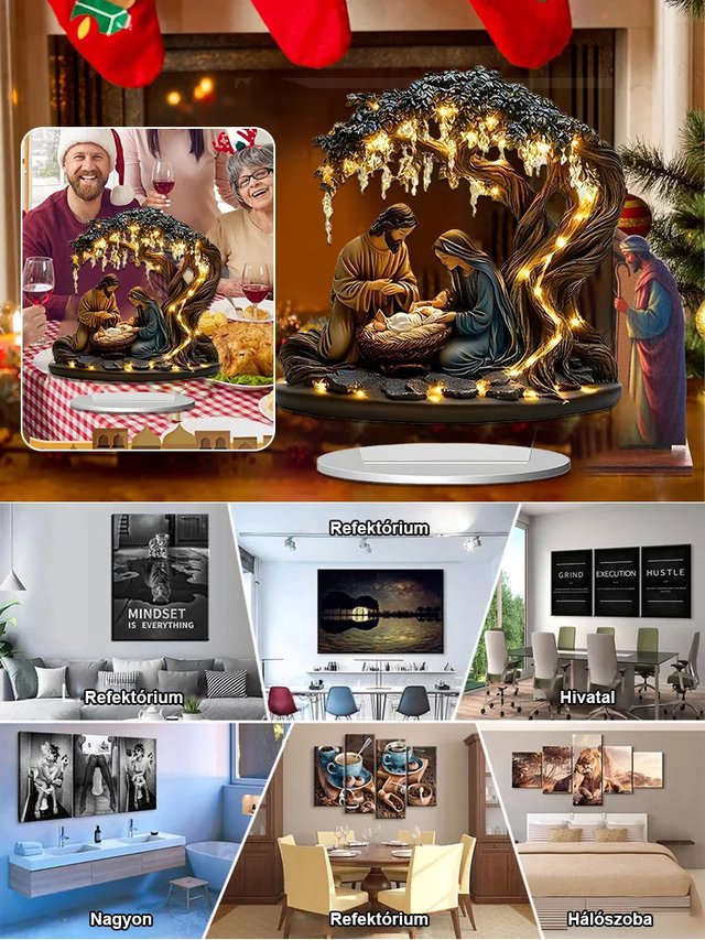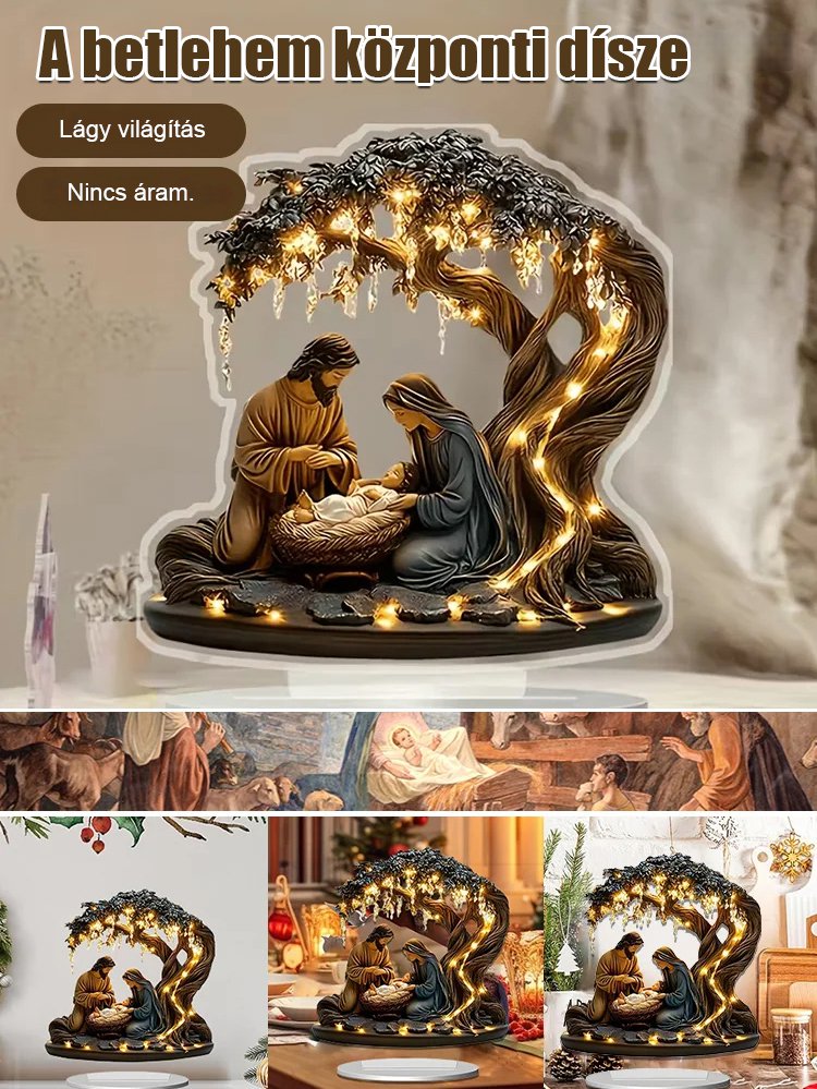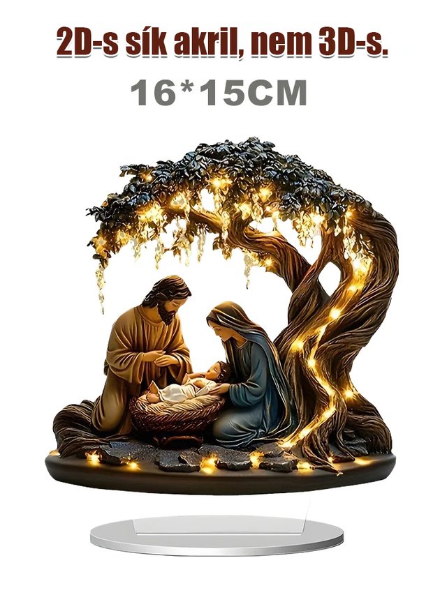 Újszülött lapos asztaldísz karácsonyi jelenettel