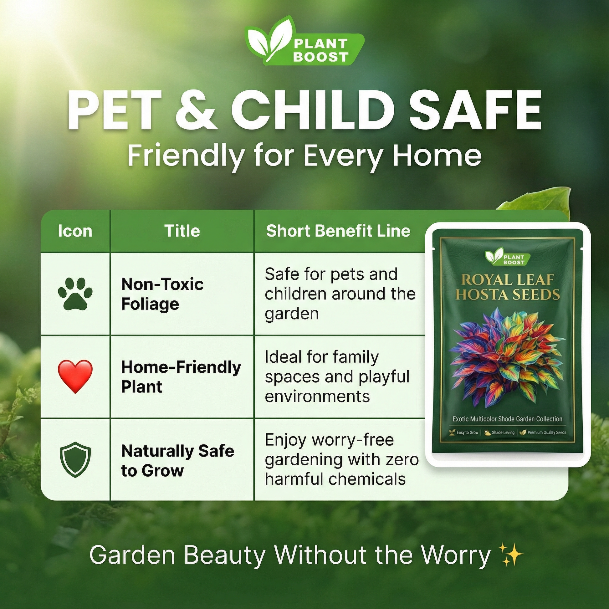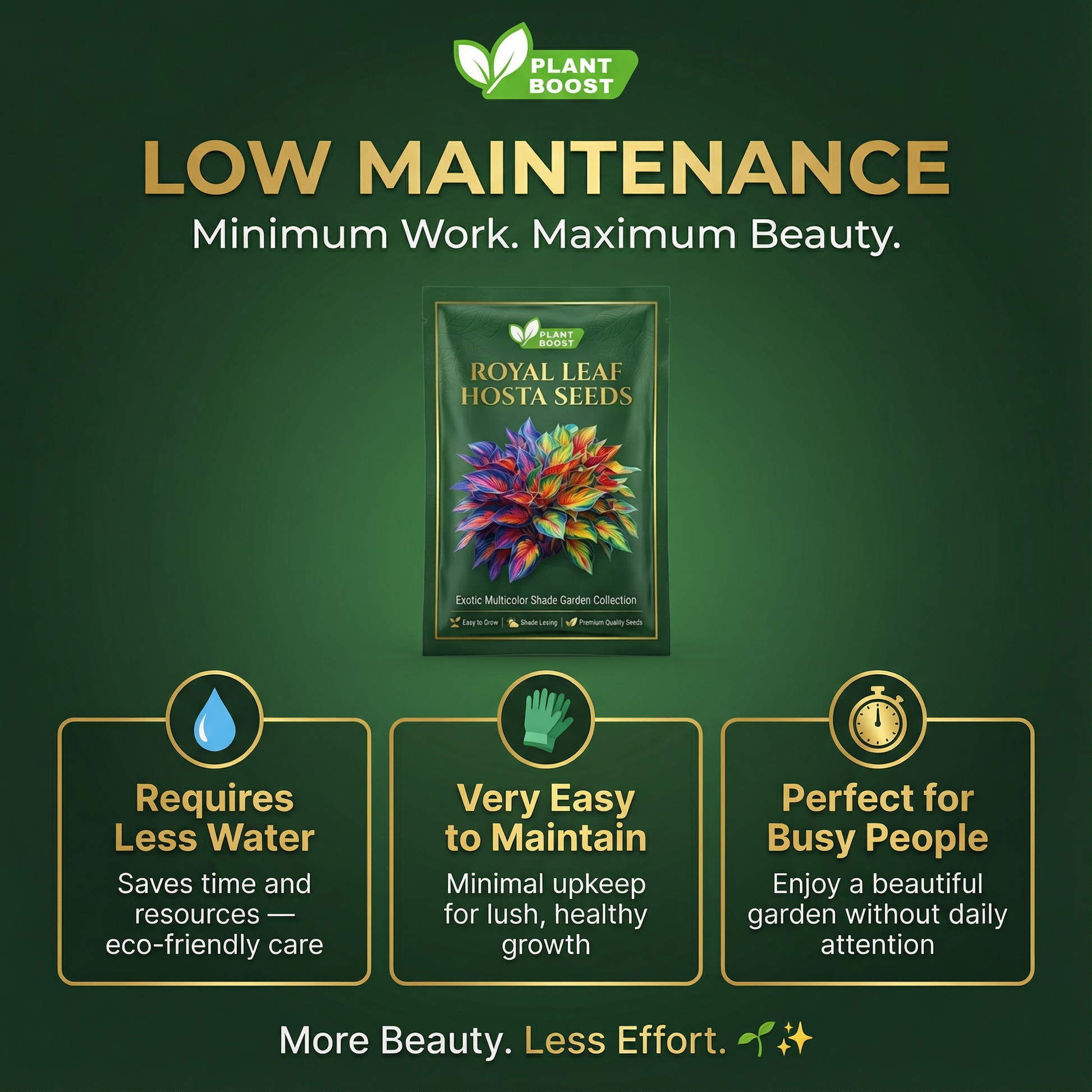 Változtasson bármilyen árnyékos helyet lenyűgöző zöld paradicsommá  a Royal Leaf Hosta magokkal  – prémium minőségű, gondosan válogatott magok, amelyek  egzotikus, sokszínű lombozatukról, hosszú növekedési ugrásukról és gondtalan gondozásukról  ismertek .