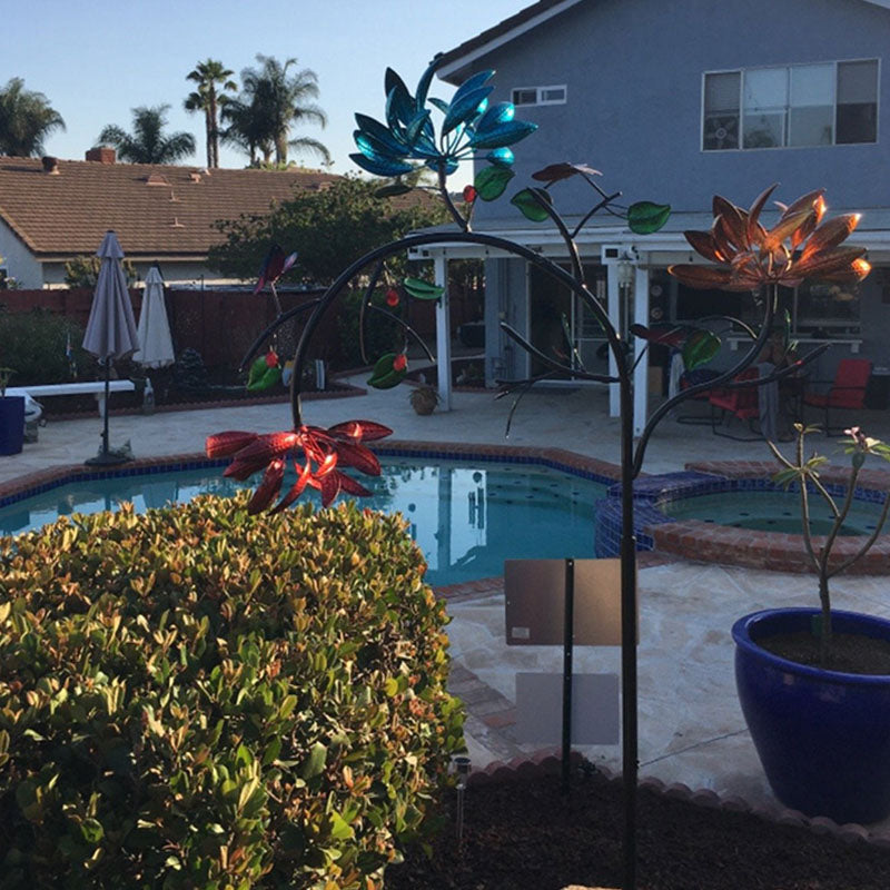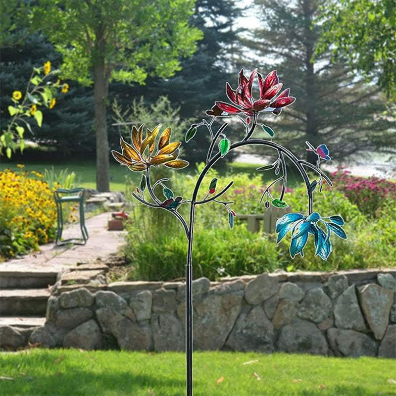 Ălvezni fogja a gyönyörƱ kinetikus szĂ©lmalmot a szabadban, sĂĄrga, rĂłzsaszĂn Ă©s kĂ©k szĂnƱ virĂĄgok hĂĄromszintes kaszkĂĄdjĂĄval Ă©s pillangĂł akcentusokkal. A szemet gyönyörködtetĆ, szĂnes virĂĄgmintĂĄzat minden szĂ©llökĂ©ssel mozgĂĄsba lendĂŒl.Â