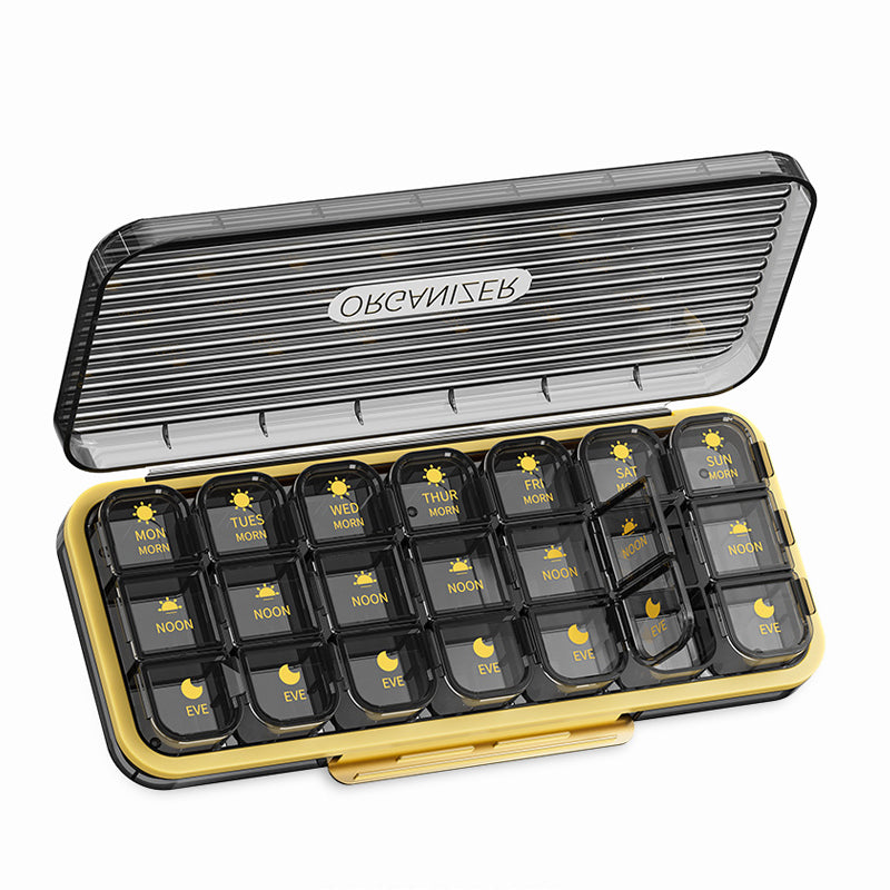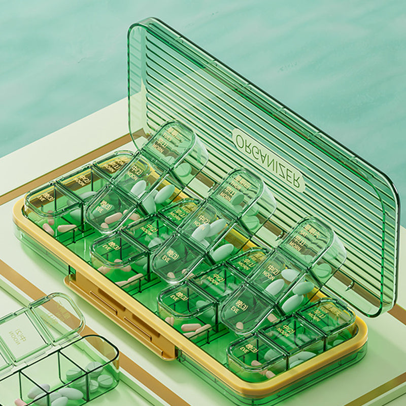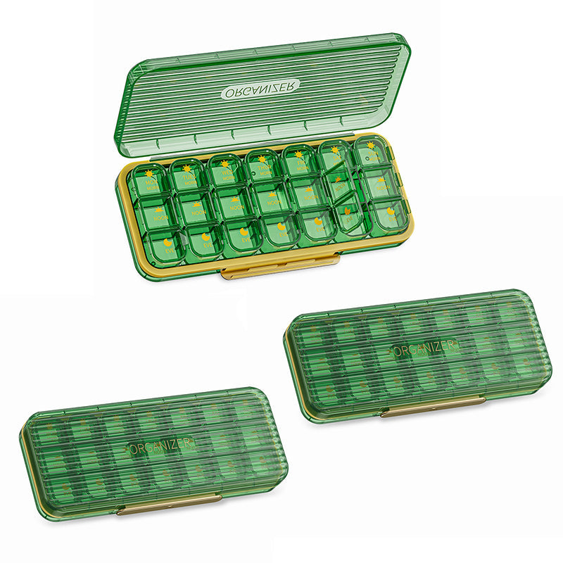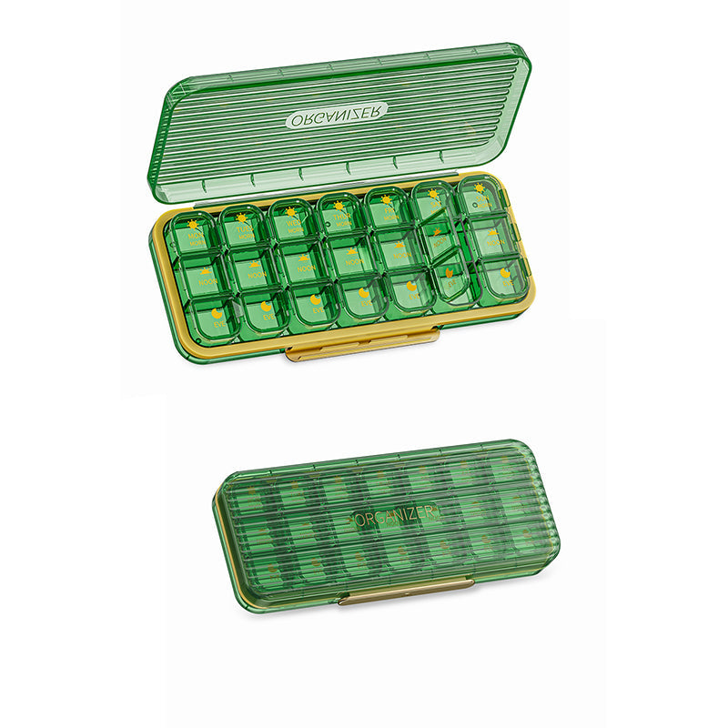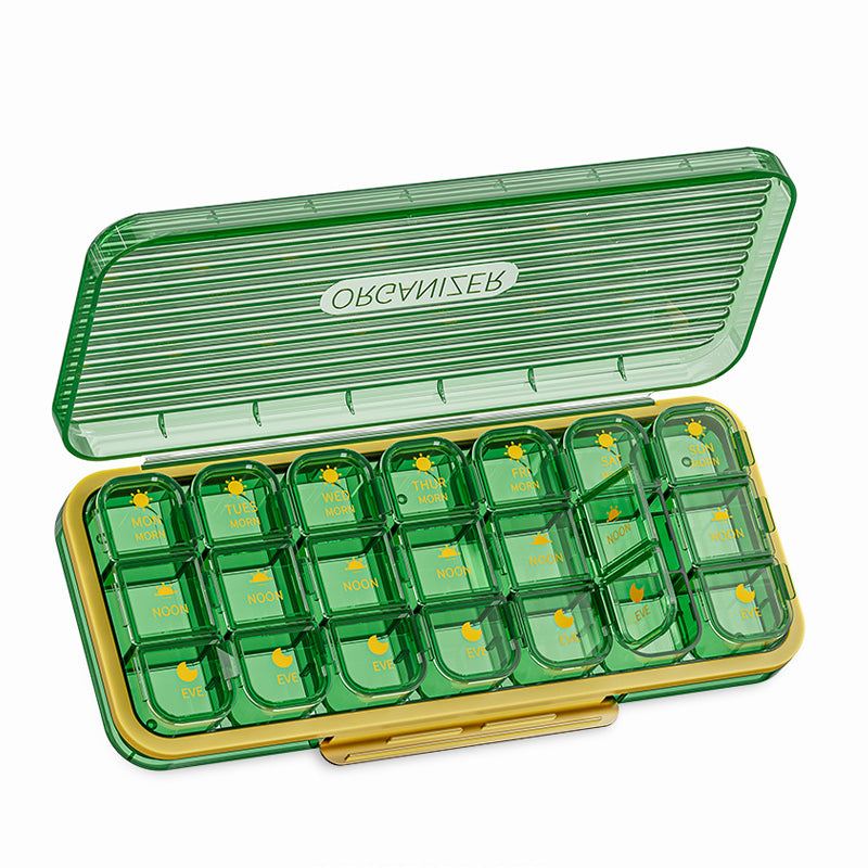 HETI SZERVEZŐ: A heti 7 napos dobozunk négy rekesszel rendelkezik (reggel/ebéd/este), hogy segítsen a hét minden napján a szervezettség megőrzésében. Segítségével előre megtervezheti a hetet, ami nagyon hasznos, és megkönnyíti otthona napi használatának intézését.